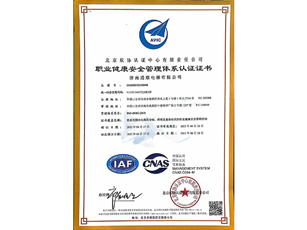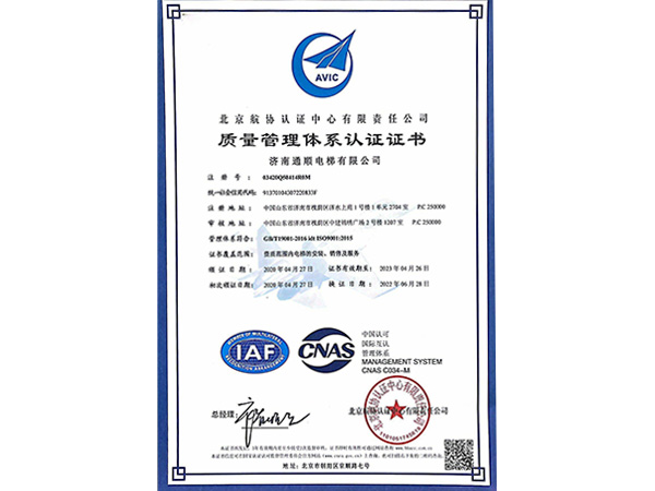 公司為了更長(zhǎng)遠(yuǎn)的發(fā)展積極申辦特種設(shè)備資質(zhì),乘客電梯A級(jí)資質(zhì);并先后通過(guò)了ISO9001質(zhì)量管理體系認(rèn)證,通過(guò)ISO14001環(huán)境管理體系認(rèn)證,通過(guò)ISO45001職業(yè)健康安全管理體系認(rèn)證;在未來(lái)將繼續(xù)以“通力”電梯為平臺(tái),共創(chuàng)公司與通力集團(tuán)的長(zhǎng)遠(yuǎn)發(fā)展而努力......